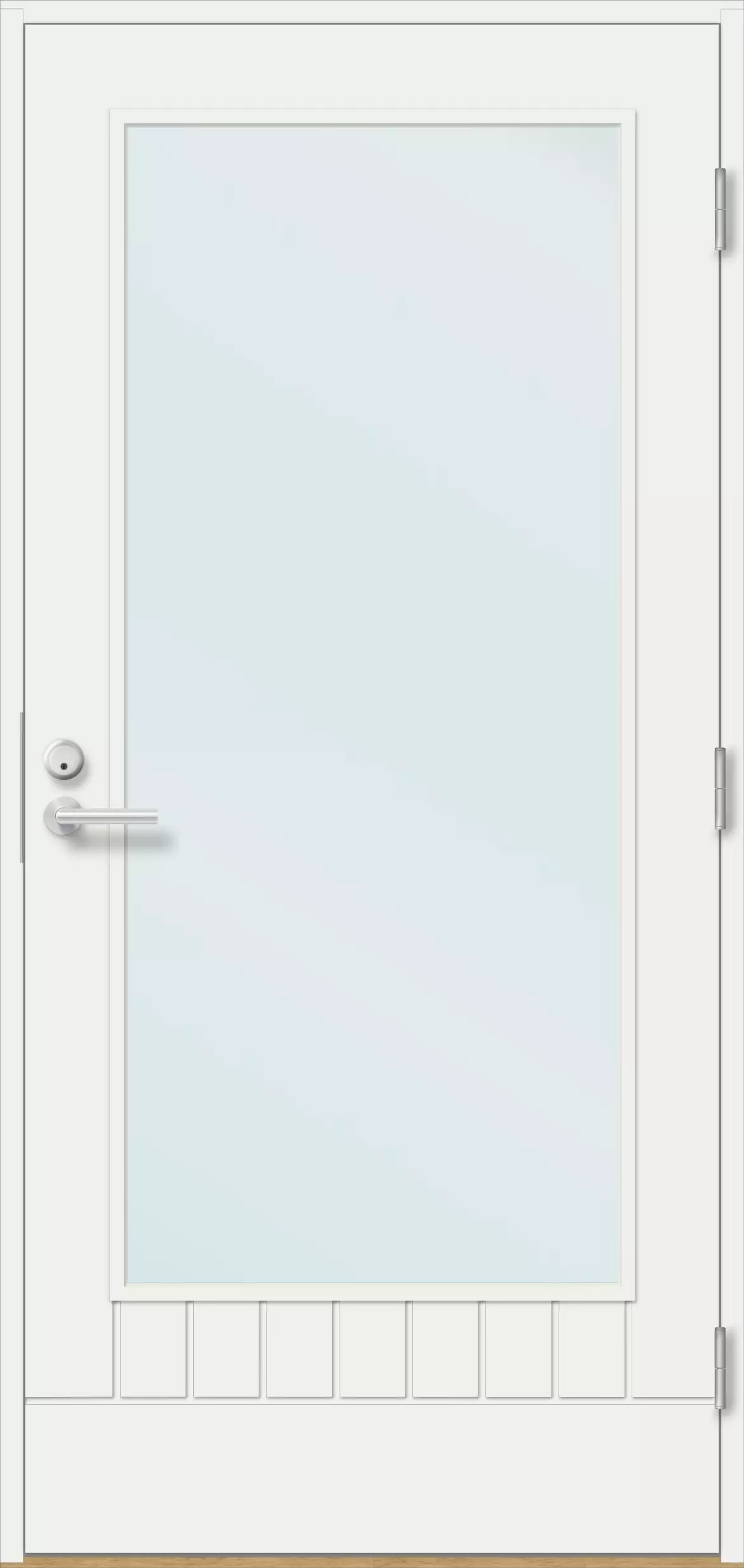 Aulikki 18M on tyylikäs ulko-ovi, joka sopii erityisesti parvekkeen tai terassin oveksi. Oven korkea lasiaukko luo näyttävän, valoa tulvivan kokonaisuuden ja tekee sisäänkäynnistä erityisen avaran.