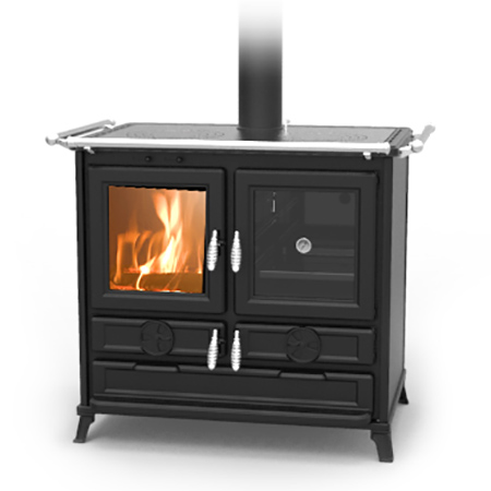 Italialainen Thermorossi Klara puuhella on nopea ruoanlaittaja ja lämmittää huoneen tehokkaasti. Hellan tummanharmaa teräs/valurautapinta on hienosti viimeistelty. Tulipesässä ja uunissa valurautaluukut. Uunin sisäpuoli on emaloitu ja uunissa on lämpömittari sekä uunipelti. Uunin alla tila ruoan lämpimänä pitämiselle. Sileäksi koneistettu valurautainen keittolevy on todella tehokas. Kätevässä säilytyslaatikossa voi pitää tarvikkeita ja jalat helpottavat hellan ympärystän puhtaanapitämistä.
