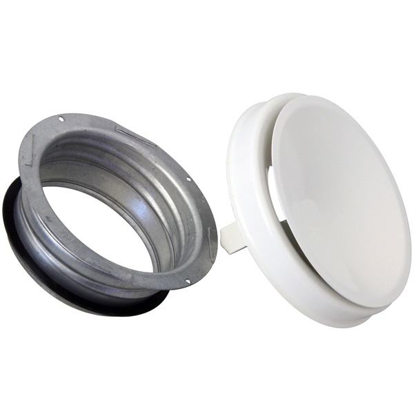 Valkoinen metallinen tuloilmaventtiili alumiinikehyksellä.