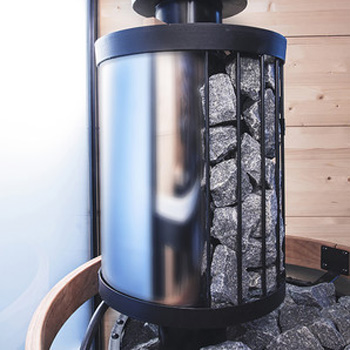 Legend vedenlämmittimen muotoilu sopii saumattomasti yhteen muiden Legend-brändin tuotteiden kanssa. Vesi lämpenee nopeasti tyylikkäässä piippumallin Legend vedenlämmittimessä, sillä savuputki toimii vesisäiliön seinämänä. Legendin 25 litran vedenlämmitin muuttaa Legend-kiukaan mökkisaunan kuninkaaksi. Vedenlämmittimen etuosa on vuorattu kiuaskivillä. Voit hyödyntää vesisäiliötä myös löylynheittopintana. Legend vedenlämmittimen hanaratkaisu on turvallinen ja tekee kuuman veden kanssa työskentelystä helpompaa. Legend vedenlämmittimen hana on viety pois kuuman vesisäiliön ja kiukaan luolta. Vesisäiliön pohjasta lähtee parin metrin musta silikoni letku, jonka päässä on vesihana. Hanan voi asentaa kiinnitysraudan avulla lauteen reunan alle tai upottaa hanan lauteen reunalaudan läpi. Kiinnitysraudan avulla hanan voi kiinnittää myös seinään.