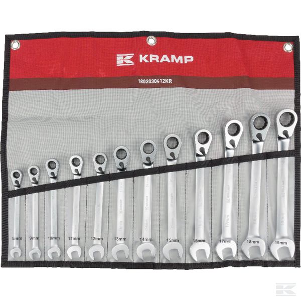 Kramp räikkäkiintoavainsarja 12 avainta. Materiaali kromivanadiini.