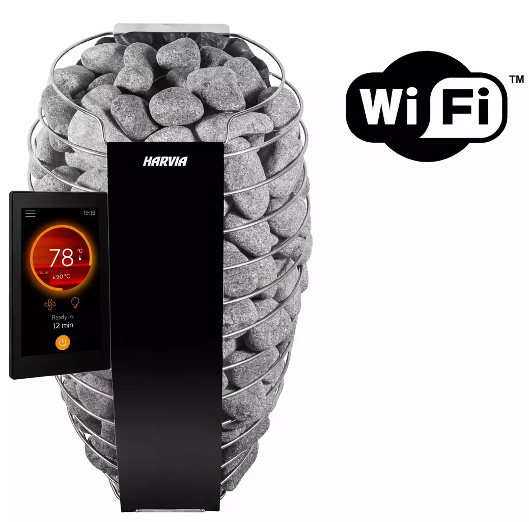 Harvia Spirit FC är ett högkvalitativt, finsktillverkat designaggregat som värmer upp din bastu snabbt och säkert. Spirits naturliga och eleganta design framhäver de runda bastustenarna och gör aggregatet till ett stilrent inredningselement i bastun. I detta väggmonterade aggregat är säkerhetsanordningen integrerad i designen – du behöver ingen annan säkerhetsutrustning för fjärrstyrning. Det inbyggda ventilationssystemet garanterar en snabb och jämn uppvärmning av bastun. Spirit FC är utrustat med den senaste intelligenta och lärande tekniken och styrs via manöverpanelen Harvia Fenix. Aggregatet levereras som ett komplett paket förberett för fjärrstyrning. Fjärrstyrningen aktiveras enkelt genom att uppgradera den kostnadsfria MyHarvia Core-licensen till en MyHarvia Control-licens i appen. När Harvia Fenix är ansluten till WiFi möjliggörs trådlösa programvaruuppdateringar som håller funktioner och prestanda uppdaterade. Fenix lär sig även din bastus uppvärmningskurva, så att du vet exakt när bastun är redo. Förpackningen innehåller Harvia Spirit FC elektriskt aggregat, Fenix manöverpanel, effektenhet, datakabel och temperaturgivare. Alla komponenter kan installeras inuti bastun.