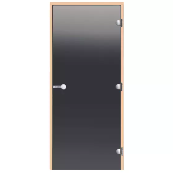 Harvias glasdörr är en utmärkt lösning för utrymmen där materialen kräver fuktmotstånd. Harvias sortiment av glasdörrar är omfattande och det finns flera färger, storlekar och karmalternativ att välja mellan. Tack vare dörrens tätning försvinner värmen inte från bastun till tvättutrymmet, och dörren stängs mjukt och behagligt. Du kan välja färgen på dörrens glas till grå, bronze, klar eller satin. Dörrkarmen är gjord av antingen furu, ask, al eller aluminium. Dörrhandtaget är en kromad knopptass. Alternativt finns en lång draghandtag med trämaterial av ask, al, värmebehandlad ask eller svartmålad al.