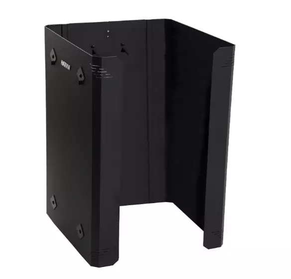 Harvia WL585 skärmvägg är designad och godkänd för vedeldade Harvia-aggregat (Harvia 22 RS och LS/Linear 22 RS och LS). Skärmväggen minskar avståndet till brännbara material avsevärt - detta innebär att aggregatet passar i mindre utrymmen. Skärmväggen fästs vid aggregatet och dess form följer aggregatets linjer, vilket ger en mer enhetlig helhet. Eftersom Harvias skärmväggar är specifika för aggregatmodeller, har inga kompromisser behövt göras i designen eller skyddsförmågan. Skärmväggen finns både som helversion och som ensidig skydd, som kan installeras på vilken sida av aggregatet som helst. Materialet för skärmväggarna är svartlackad stålplåt. Om även golvet behöver skyddas är den svarta skyddsmattan WL100 en stilren lösning.
