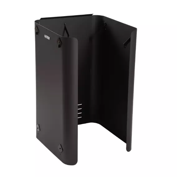 Harvia WL850 skyddsvägg är designad och godkänd för vedeldade Harvia-ugnar (Harvia 36/36 Duo). Skyddsväggen minskar avsevärt säkerhetsavståndet till brännbara material – dessutom får ugnen plats även i mindre utrymmen. Skyddsväggen fästs vid ugnen och dess form följer ugnens konturer, vilket ger en mer strömlinjeformad helhet. Eftersom Harvias skyddsväggar är modellspecifika för ugnen har det inte behövts kompromissas i design eller skyddsförmåga. Skyddsväggen finns både som helversion och som ensidig skydd som kan monteras på valfri sida av ugnen. Materialet i skyddsväggarna är svartlackerad stålplåt. Om även golvet måste skyddas, är den svarta skyddsplattan WL100 en stilren lösning.