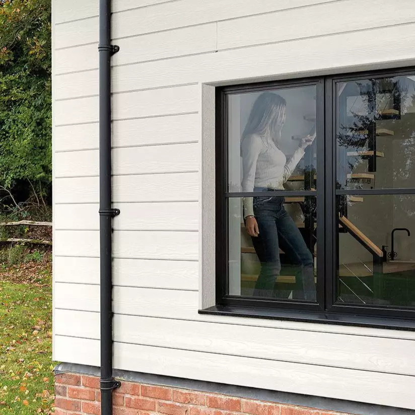 Den pontade panelen på de långa sidorna är lätt att installera och passar både horisontell och vertikal installation. Vanligt snickarverktyg är tillräckligt. Till skillnad från traditionell träbeklädnad reagerar Cedral fiberbetongpaneler inte på temperaturvariationer genom att svälla eller krympa, utan förblir exakta oavsett årstid. Detta betyder att det inte behövs extra utrymmen för rörelse vid installation.