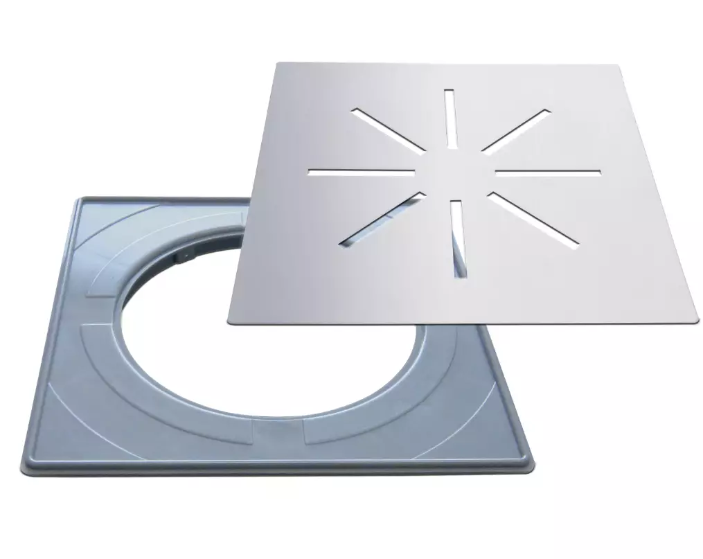 Golvrensstock med standardmonteringsram, 804 Sunrise Rostfri 197X197mm