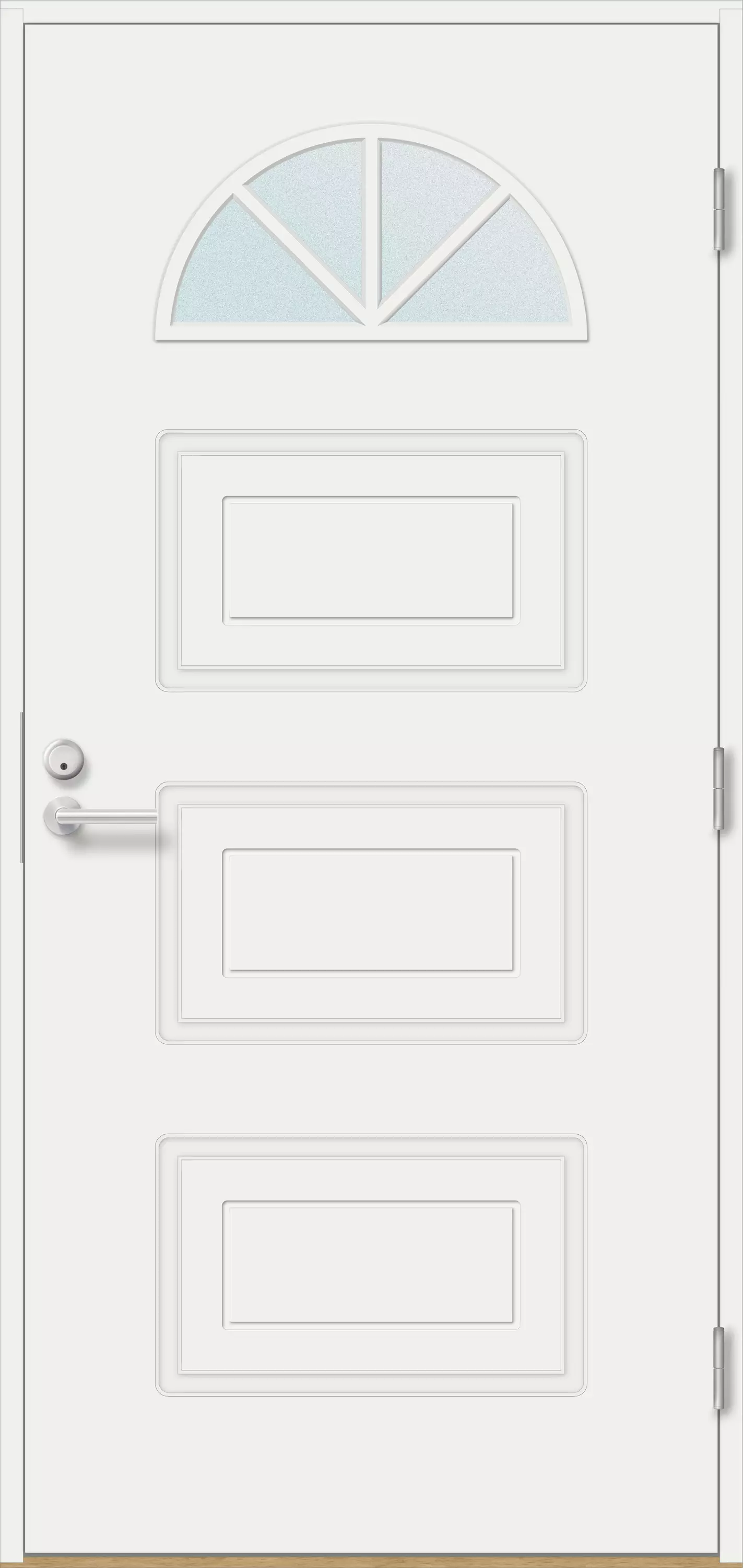 Hannu är en klassiskt värdefull ytterdörr som står emot tidens tand och varierande väderförhållanden. Den bågformade glasytan och de urfrästa detaljerna på undersidan skapar en imponerande men harmonisk helhet som särskilt passar i traditionella och hemtrevliga entréer. Dörrens aluminiumförstärkta struktur, 78 mm tjock, och den dubbla tätningen håller kylan ute och värmen inne. Hannu är designad för hem där energi-effektivitet, hållbarhet och kvalitet från inhemskt arbete värderas.