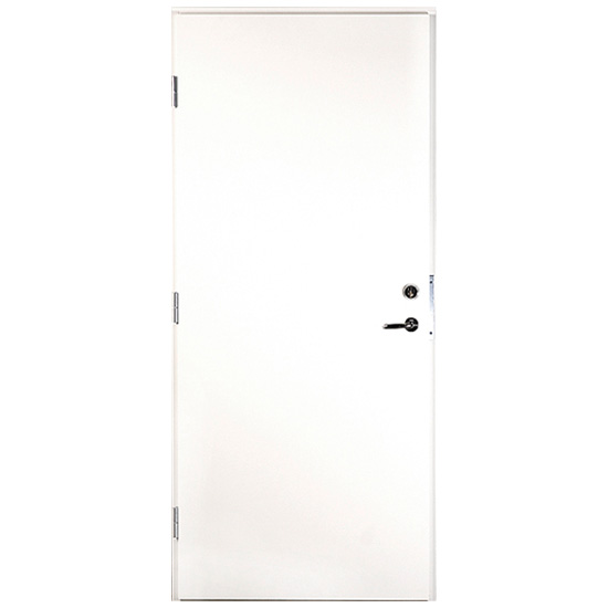 Slät våningsdörr / branddörr EI 30/43 dB ljudisolerande träbranddörr. Våningsdörr / branddörr är en vit, slät branddörr som är lämpad för inomhusbruk. Den används som ljuddämpande och brandisolerande dörr i brandfall inom lokaler. Ej lämpad som ytterdörr. Leveransen av dörren inkluderar förutom dörren även karm och tröskel. Knopp och täckskiva eller vred beställs separat. Passande inomhusdörrknoppar och beslag från Abloy. Nyckelord: Våningsdörr, lägenhetsdörr, lägenhetsdörr
