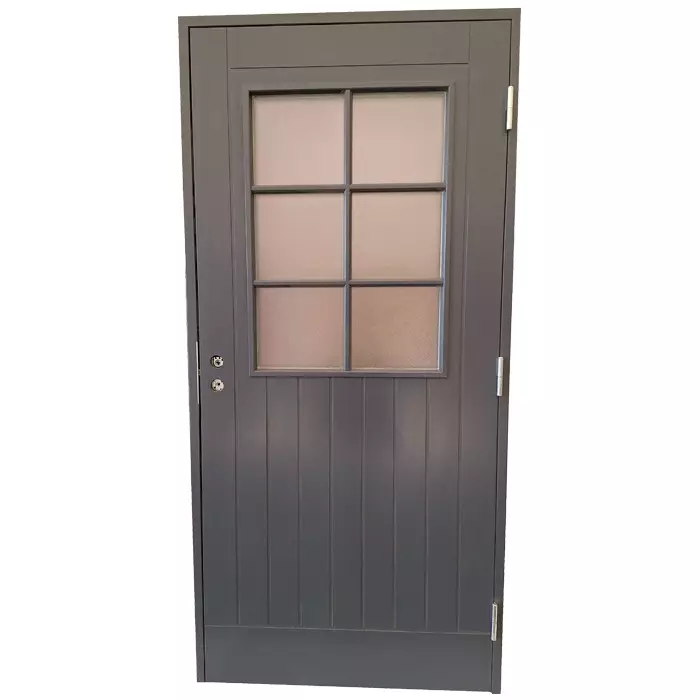 Ytterdörr Hilja 9x21 Mörkgrå Höger, 6 Fönsterdelar, Lodrät Struktur