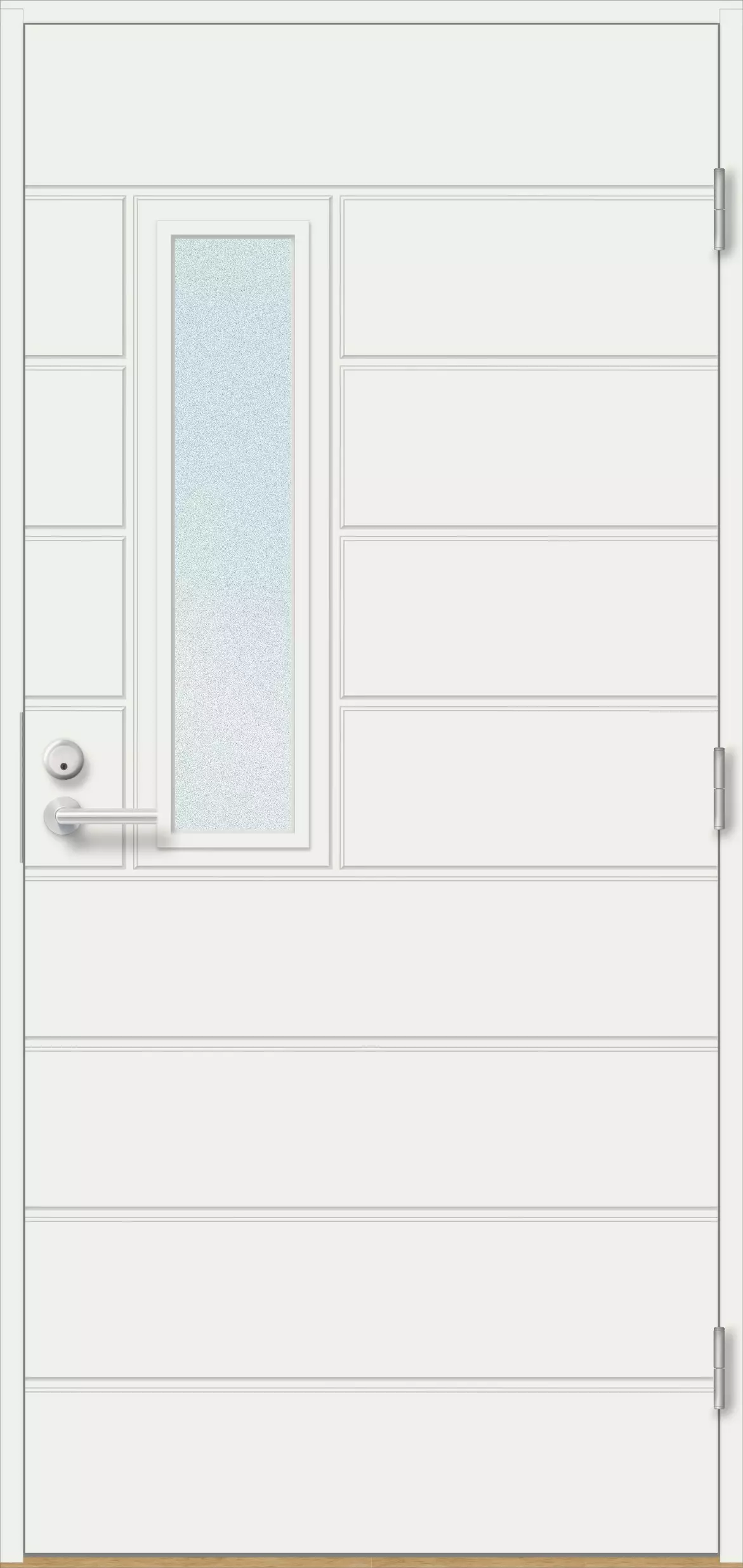 Hilla är en tidlöst elegant ytterdörr som står emot tidens tand och varierande väderförhållanden. Den smala glasöppningen i mitten av dörren och den horisontellt räfflade ytan ger ljus och lätthet till entrén. Dörrens aluminiumförstärkta, 78 mm tjocka konstruktion och dubbel tätning håller kylan borta och värmen inne. Hilla är designad för hem där man värdesätter energieffektivitet, hållbarhet och kvalitet av inhemskt arbete.