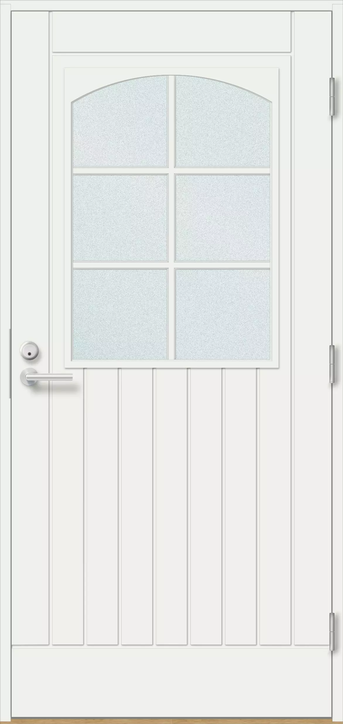 Veera är en varm och klassisk ytterdörr som tål tidens tand och varierande väderförhållanden. Den bågformade glasöppningen med 6-rutors galler och den vertikalt räfflade yttersidan ger entrén en traditionell charm och hemtrevlig karaktär. Dörrens aluminiumförstärkta, 78 mm tjocka konstruktion och dubbla tätningar håller kylan borta och värmen inne. Veera är designad för hem som värdesätter energieffektivitet, hållbarhet och kvaliteten av inhemskt arbete.