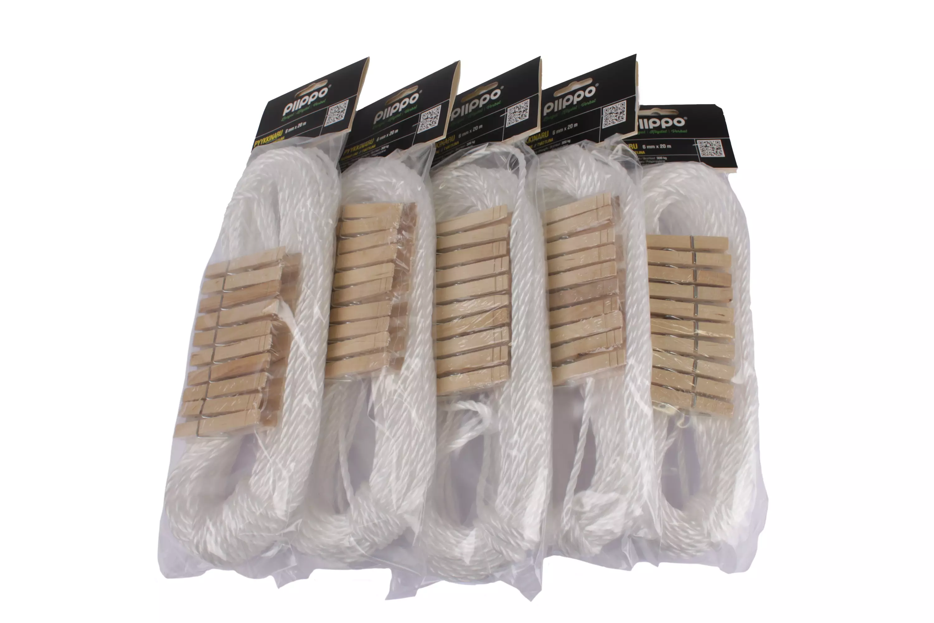 Populärt val för hushåll som vill ha en tvättlina med lång hållbarhet. -Vit 6mm x 20m. -Polypropen. -UV-Skyddad. -Tvinnad lina. -Brottstyrka 300kg. -Observera att knytning halverar linans... Läs mer
