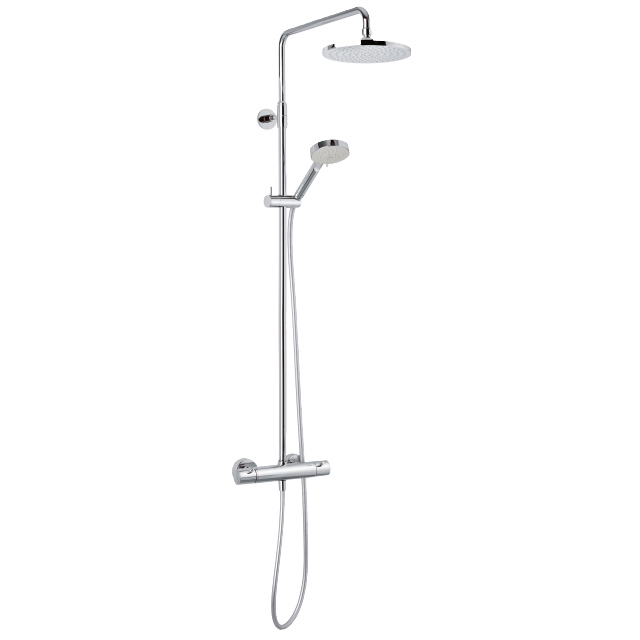 - Innehåller termostater, teleskopiskt duschrör och -slang, taksil och handdusch