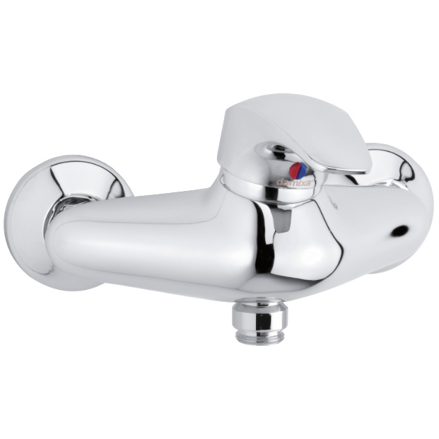 Från Lakkapää Damixa blandare! Damixa Space duschblandaren har keramsik reglerinsenhet och skållningsskydd, så att du inte bränner dig. Skyddet aktiveras vid 38 °C grader och lämpar sig därför för barn. Blandarens Eco-Save -sparfunktion sparar vatten, och den aktiveras genom en liten skruv på blandaren. Du sparar vatten upp till 25-30 % jämfört med normal användning. Blandaren går att koppla till dusch med 1/2" koppling.