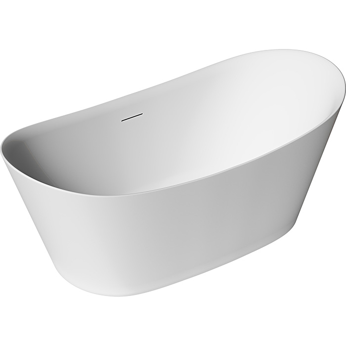 Det fristående badkaret i spadeform har en matt yta som ger en angenäm känsla. Sömlösa kanter förstärker känslan av lyxig design, och den centralt placerade avloppsproppen gör att du kan bada i antingen ände. Den unikt utformade överfaren minimerar risken för överflöd.
