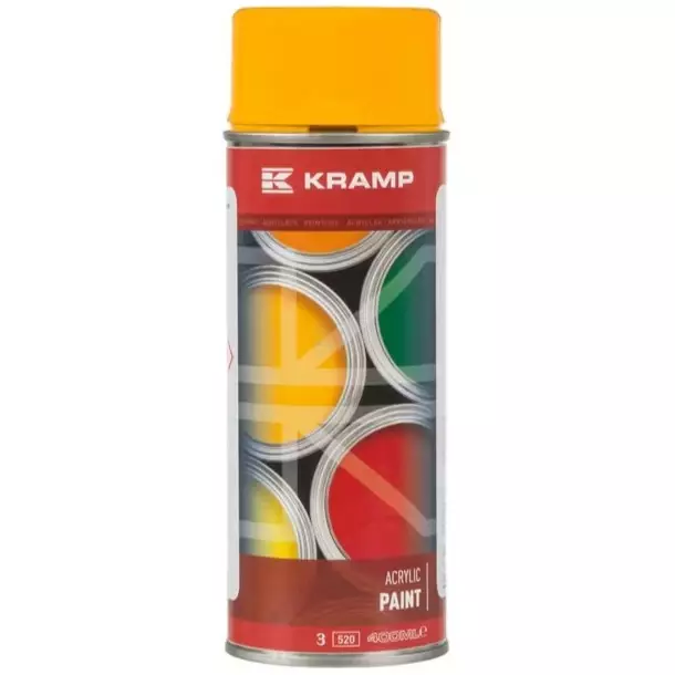 Kramp sprayfärg är en starkt pigmenterad, snabbtorkande och högkvalitativ 1K-färg. Färgen är rep-, slag- och stöttålig och har en hög ythårdhet med en icke bleknande färg som inte gulnar. Den är idealisk för lackreparationer på maskiner, maskindelar, verktyg, fordon m.m.