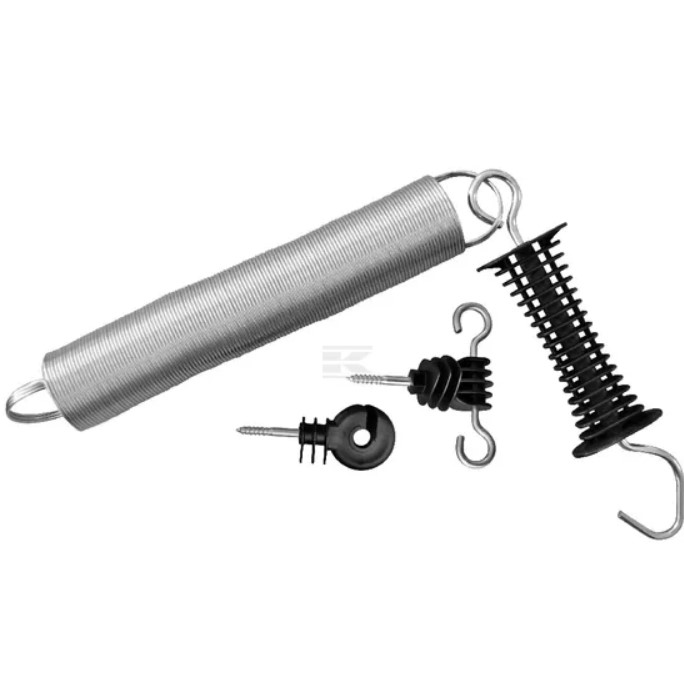 Teknisk information: Kan dras ut till 5 m, Ej lämplig för häststängsel, 1 grindhandtag med krok, 1 specialfjäder, 2 grindankare